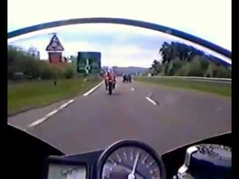 R1 racing a Porsche on some very twisty roads reaching speeds of 170 mph. (this is not me nor anyone i know)