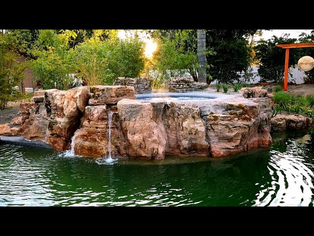 Anthony Archer-Wills can't wait to show off this natural, Japanese-inspired pool to clients Andy and Heather. This pool features a gong, zig-zag bridge, a spa, and three fire pits. | http://www.animalplanet.com/tv-shows/the-pool-master