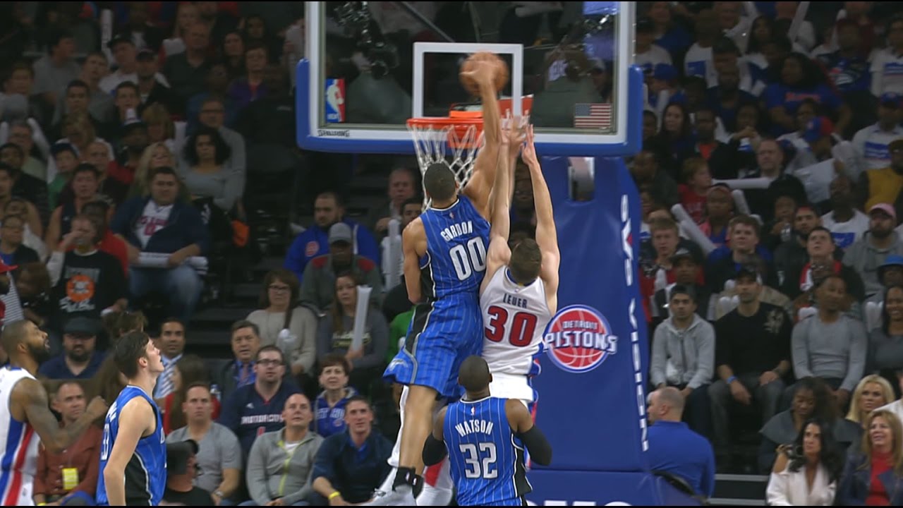 Here is Aaron Gordon gets up on the putback dunk and slams it home with one hand.
