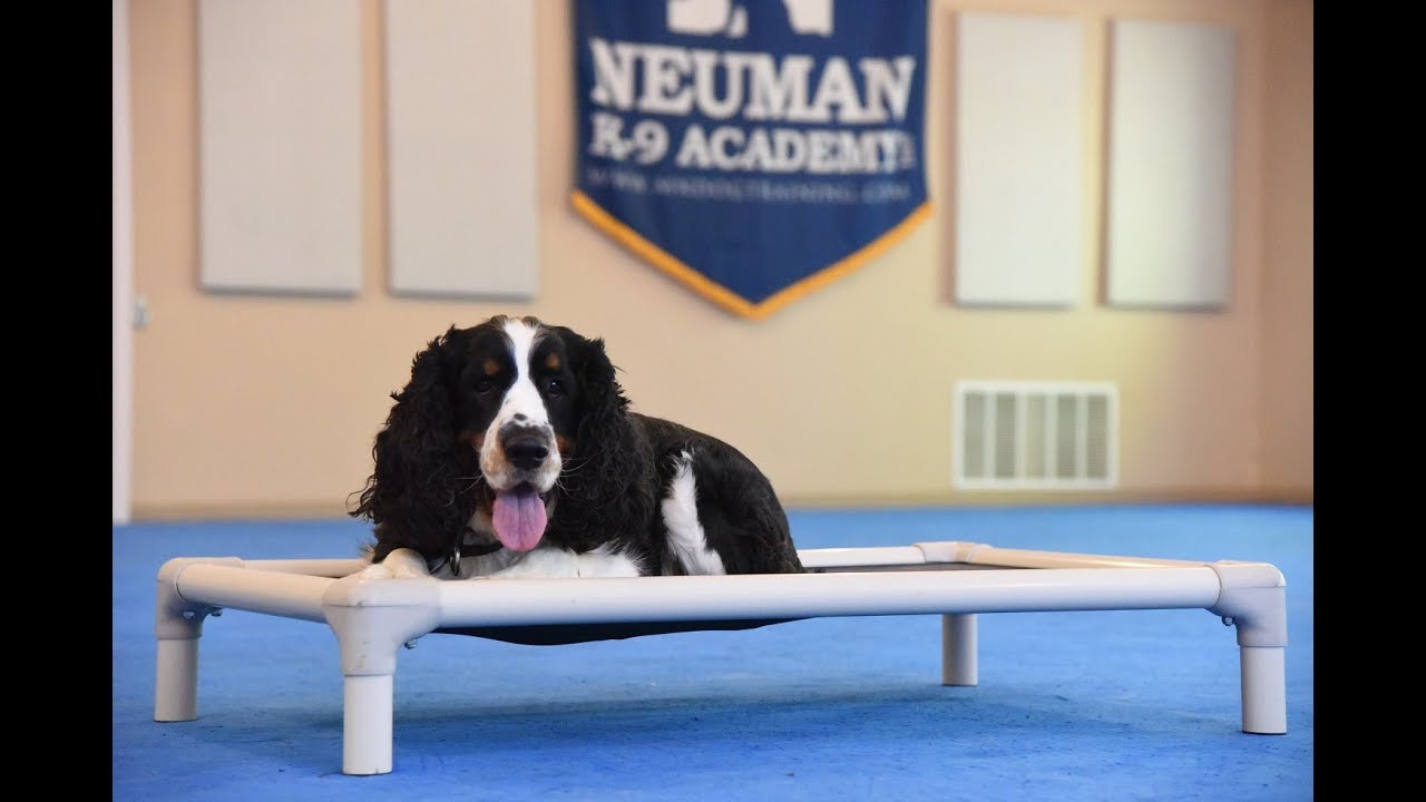 Bart (Springer Spaniel) graduated from the dog training boot camp at Neuman K-9 Academy. This program included obedience commands to sit, stay, heel or walk on a loose leash, come when called, proper etiquette, no jumping up, meeting and greeting people under control, and running on a treadmill.