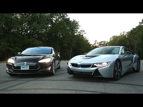 The BMW i8 is a sleek and sexy hybrid. The Tesla Model S is an all-electric powerhouse. What happens when these two titans are matched head-to-head?