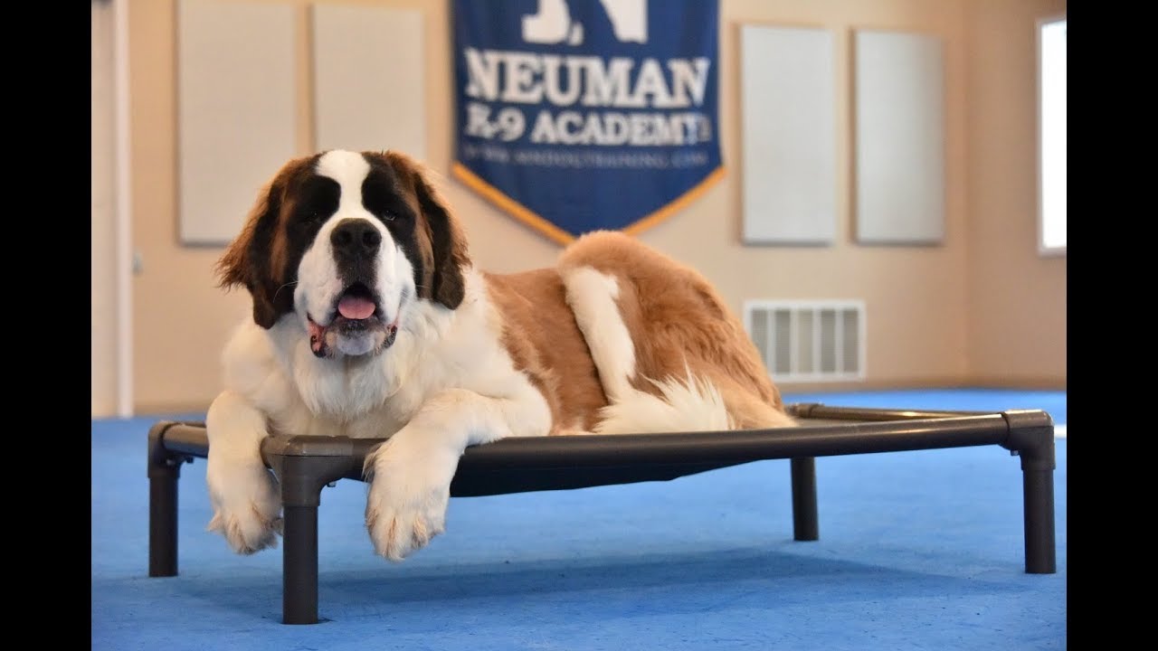 Captain (Saint Bernard) graduated from the dog training boot camp at Neuman K-9 Academy. This program included obedience commands to sit, stay, heel or walk on a loose leash, come when called, proper etiquette, no jumping up, meeting and greeting people under control, and running on a treadmill.