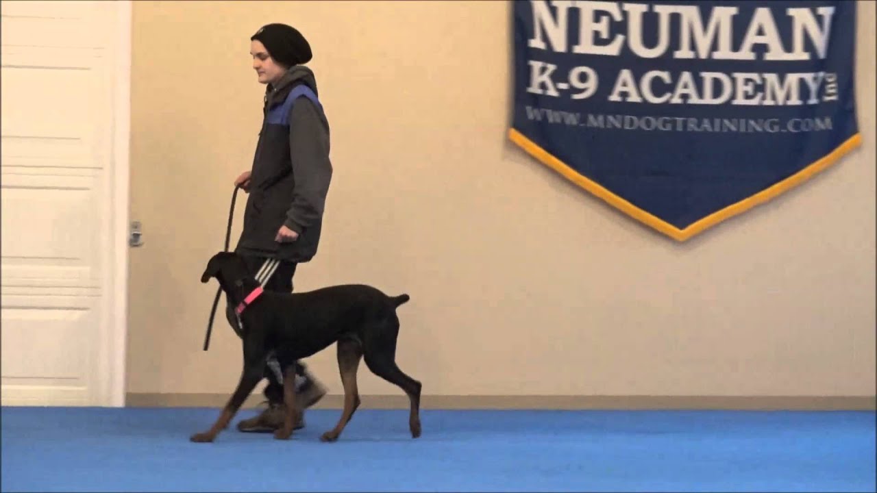 Daisy (Doberman Pinscher) graduated from the dog training boot camp at Neuman K-9 Academy. This program included obedience commands to sit, stay, heel or walk on a loose leash, come when called, proper etiquette, no jumping up, meeting and greeting people under control, and running on a treadmill.