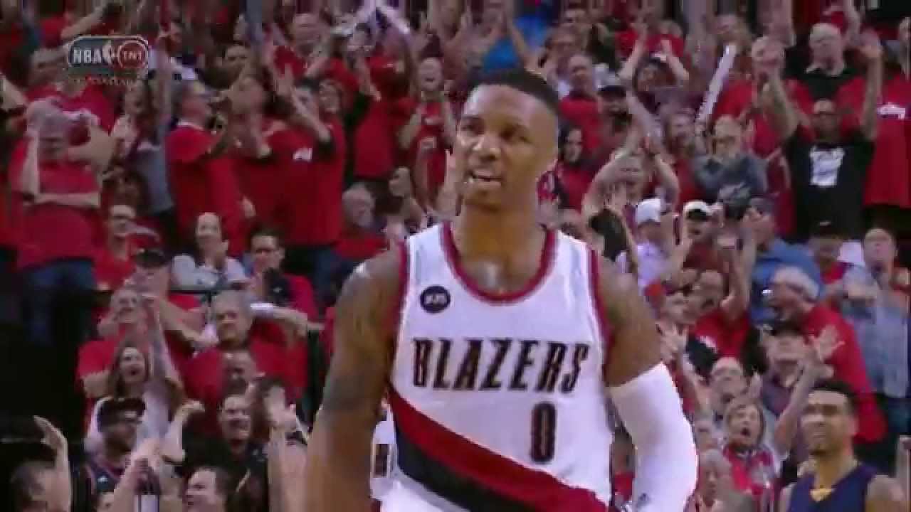 Damian Lillard hits the three-pointer and draws the foul for the four-point play.
