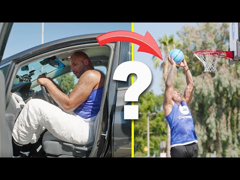 All these numbers are added up to give us our score on the Cramp-o-meter. And just to be sorta fair, we’re going to measure all of these in a position where our driver is as close to the wheel as possible and can still technically drive, because we figure in a real setting you might have to travel with luggage in the back. Now to actually test how much these cramped cars would affect mobility in the real world we’re going to set up a test. We’re going to have our subject drive each car on our standardized concourse for 15 minutes. This will serve as our control. From here we will ask them to immediately come out of the vehicle and dunk a basketball, of which was confirmed they could do before this test