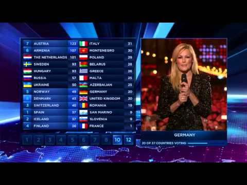 Helene Fischer announces the German voting at the 2014 Eurovision Song Contest. Read more of the background to Helene's appearance at my article here: http:/...