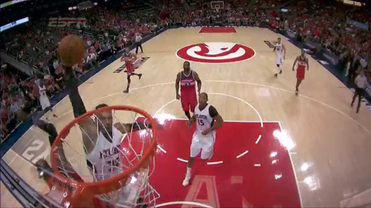 Dennis Schroder finds Mike Scott on the fast break for the powerful slam.