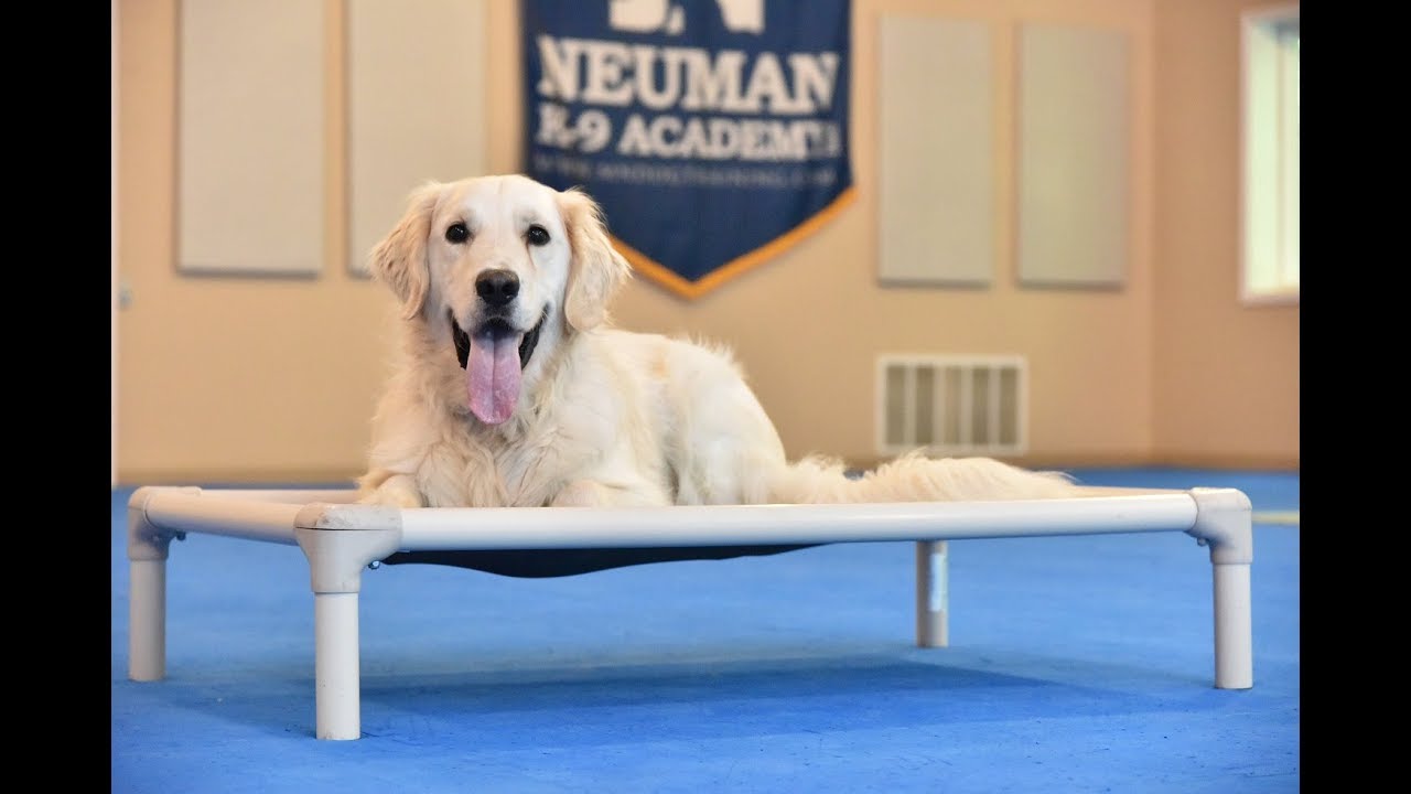 Miles (English Golden Retriever) graduated from the dog training boot camp at Neuman K-9 Academy. This program included obedience commands to sit, stay, heel or walk on a loose leash, come when called, proper etiquette, no jumping up, meeting and greeting people under control, and running on a treadmill.