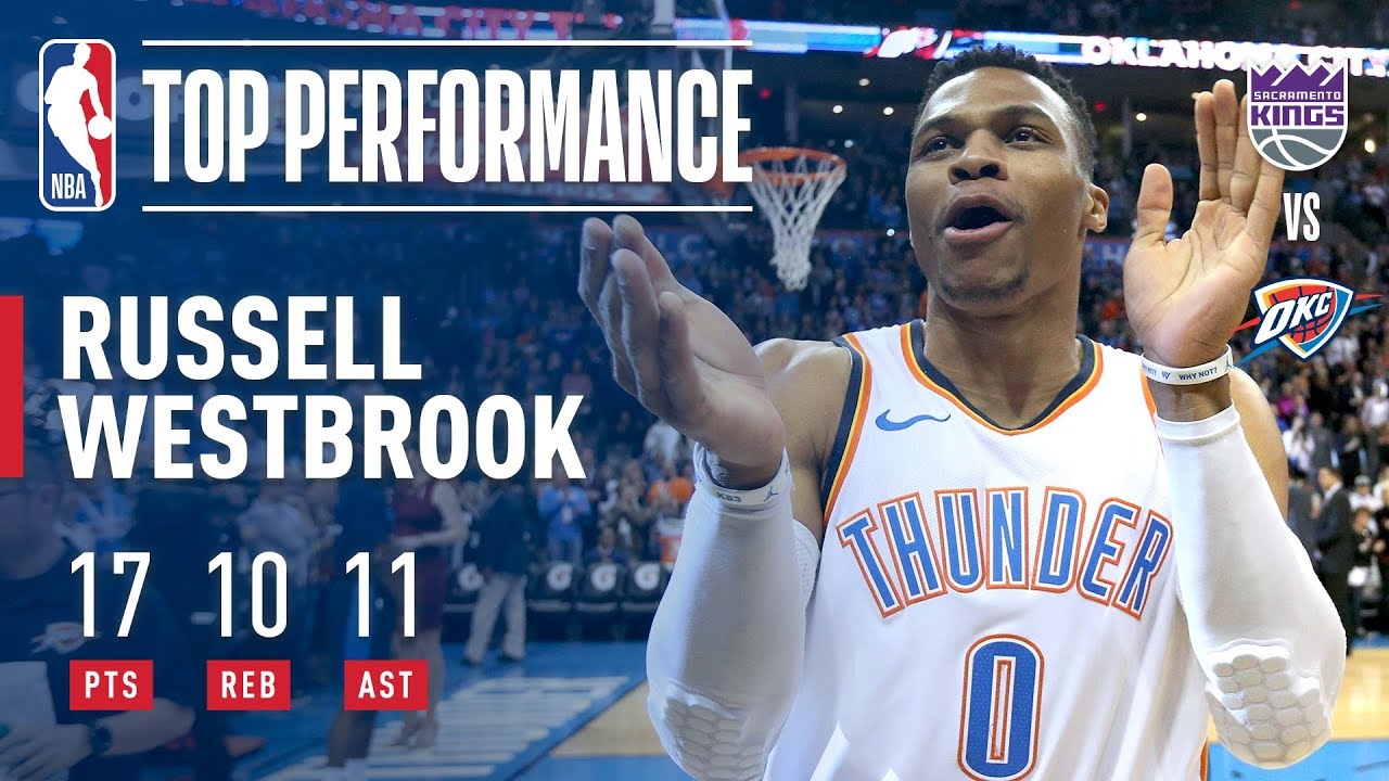 Russell Westbrook (17 points, 11 assists, 10 rebounds) recorded his 20th triple-double of the season (99th of career) to propel the Oklahoma City Thunder to a 106-101 victory over the Sacramento Kings tonight in OKC