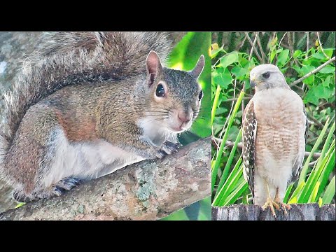 Not a Tall Tale, a True Tale of a Red Shouldered Hawk, the top predator of the Backyard and a Gray Squirrel that learned a valuable lesson - always listen to the Blue Jays and heed their warning.