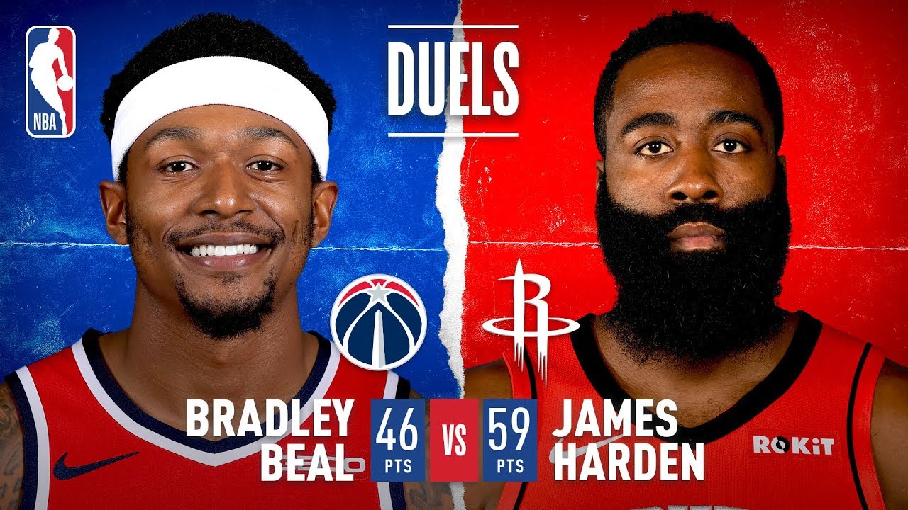 James Harden recorded 59 PTS and 9 AST for the Rockets, while Bradley Beal finished the night with 46 PTS, 6 REB 8 AST and 3 STL for the Wizards.